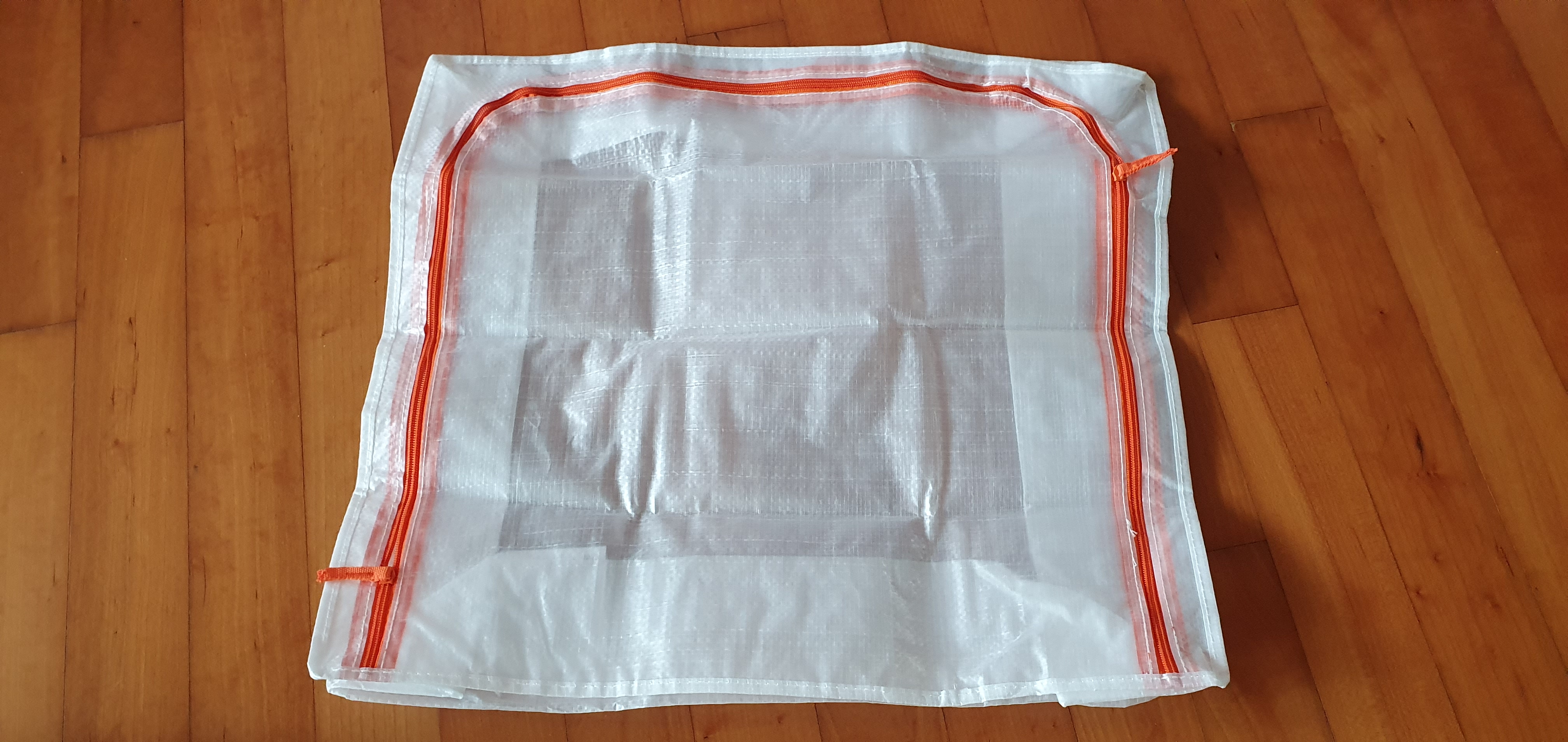 재질이 조금은 힘이 있어서 어느정도 모양을 유지하고는 있습니다. 비료포대 같은 재질...?
