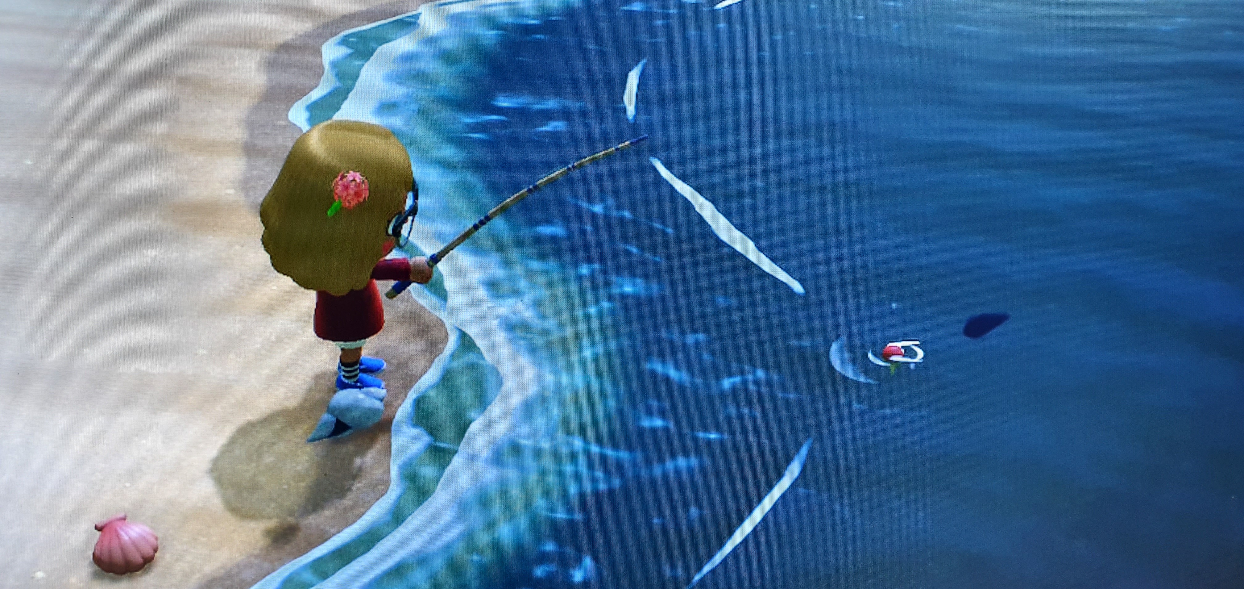 미끼를 물어버려쓰~ 여기까지 기본적인 모동숲 낚시 방법이였구요.