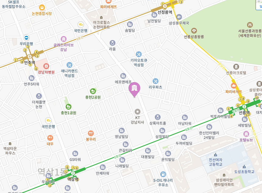 어느 역삼역, 선릉역, 언주역, 선정릉역 에서 걸어서 15분~20분 걸리기 때문에