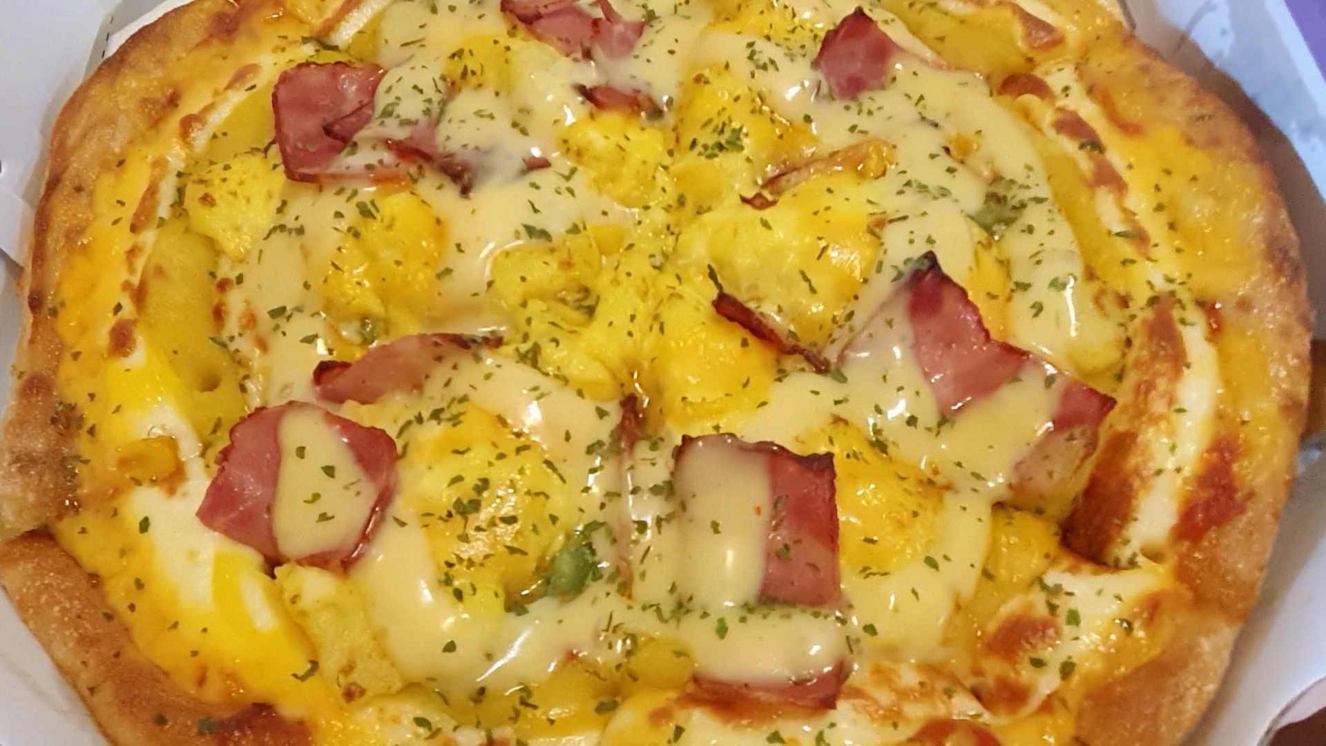 영롱한 에그콘 피자의 모습...
