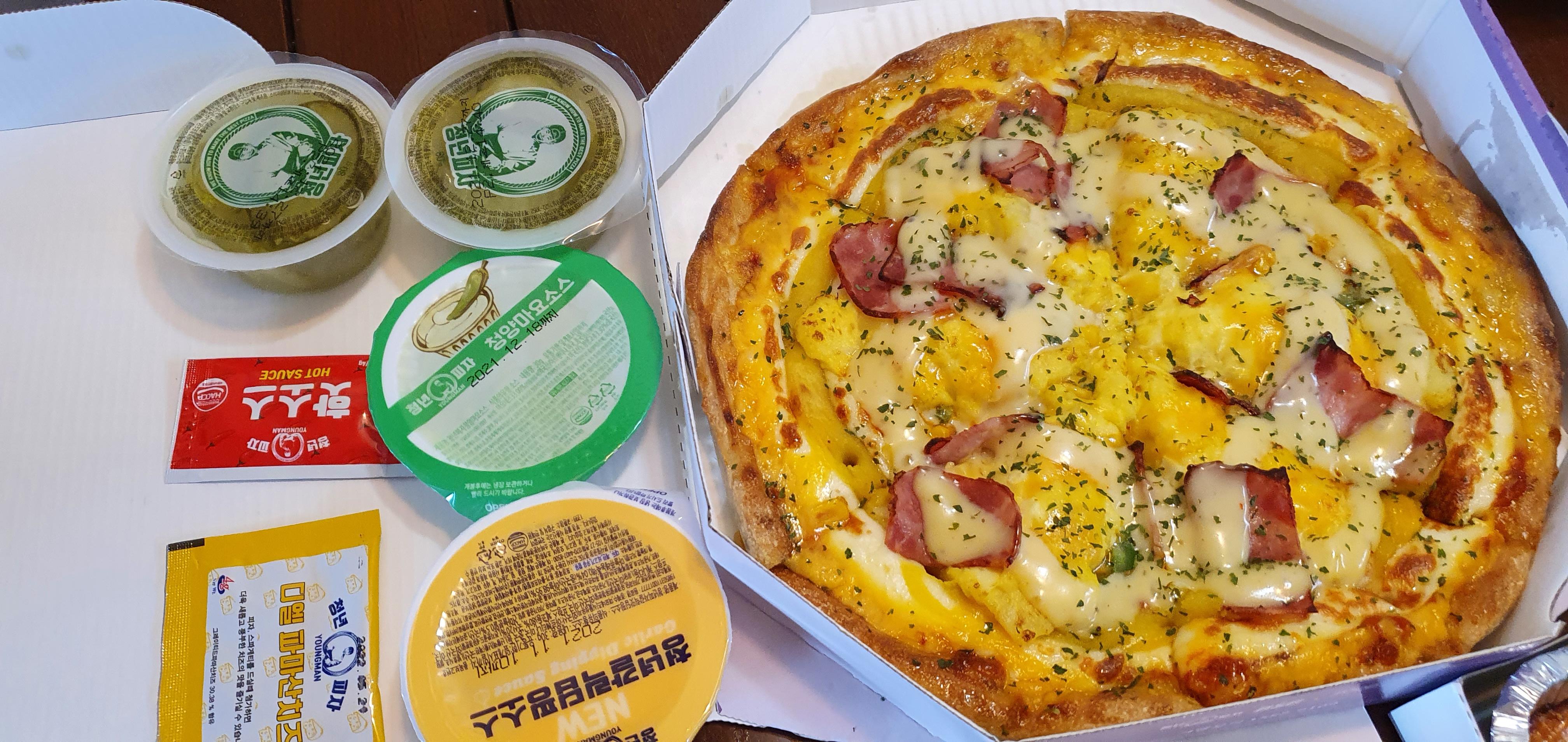 청년피자의 에그콘피자를 한번 시도해보세요~