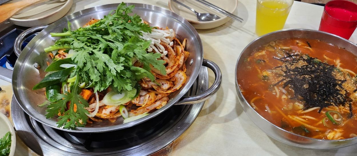 내가 주문한 건 얼큰한 칼국수 7,000원, 주꾸미 2인분이다.
